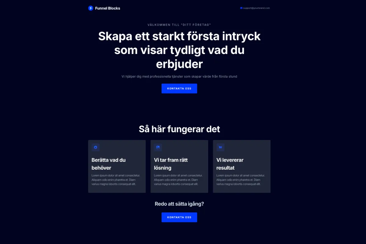 Layouten är enkel att anpassa och gör det lätt att presentera tjänster, erfarenhet, bilder och kontaktuppgifter på ett professionellt sätt.